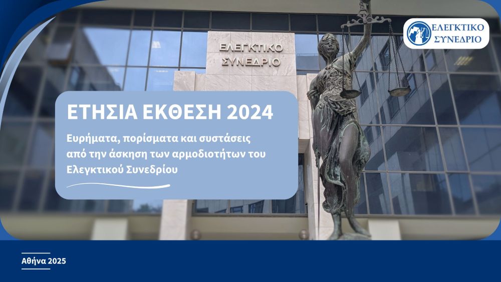 Το Ελεγκτικό Συνέδριο ανακοινώνει τη δημοσίευση της Ετήσιας Έκθεσής του για το 2024, η οποία περιλαμβάνει τα ευρήματα, πορίσματα και τις συστάσεις από την άσκηση των αρμοδιοτήτων του Ανωτάτου Δημοσιονομικού Δικαστηρίου.