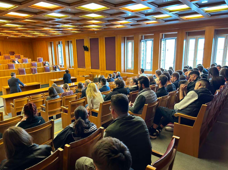 Τους υποδέχθηκαν η πάρεδρος Μ. Μπαμπίλη, και οι εισηγητές Ε. Χατζοβούλου-Λεμπέση, Θ. Ρουμελιώτη και Γ. Τζανάτου. Παρακολούθησαν τη συνεδρίαση του Δ’ Τμήματος και στη συνέχεια η πάρεδρος Ουρ. Νικολαράκου μαζί με τους προαναφερθέντες δικαστές τους ενημέρωσαν για την οργάνωση, τις αρμοδιότητες και τη λειτουργία του Σ.τ.Ε. και απάντησαν σε ερωτήσεις. Ακολούθησε ξενάγηση στους χώρους του Δικαστηρίου.
