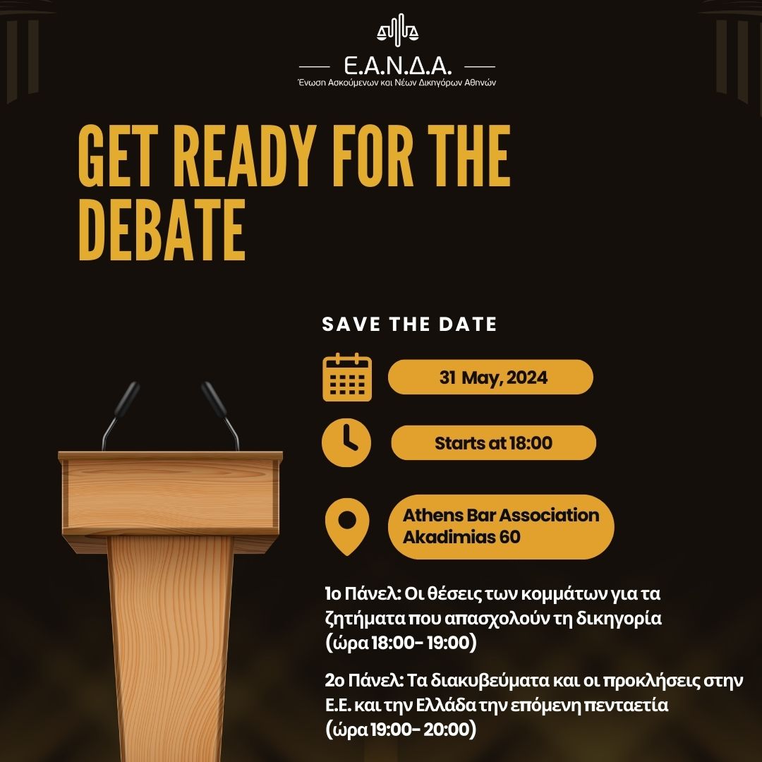 Την Παρασκευή, 31/5/2024 και ώρα 18:00-20:00, η ΕΑΝΔΑ διοργανώνει πολιτικό debate με εκπροσώπους των κομμάτων, ενόψει των επικείμενων ευρωπαϊκών εκλογών.