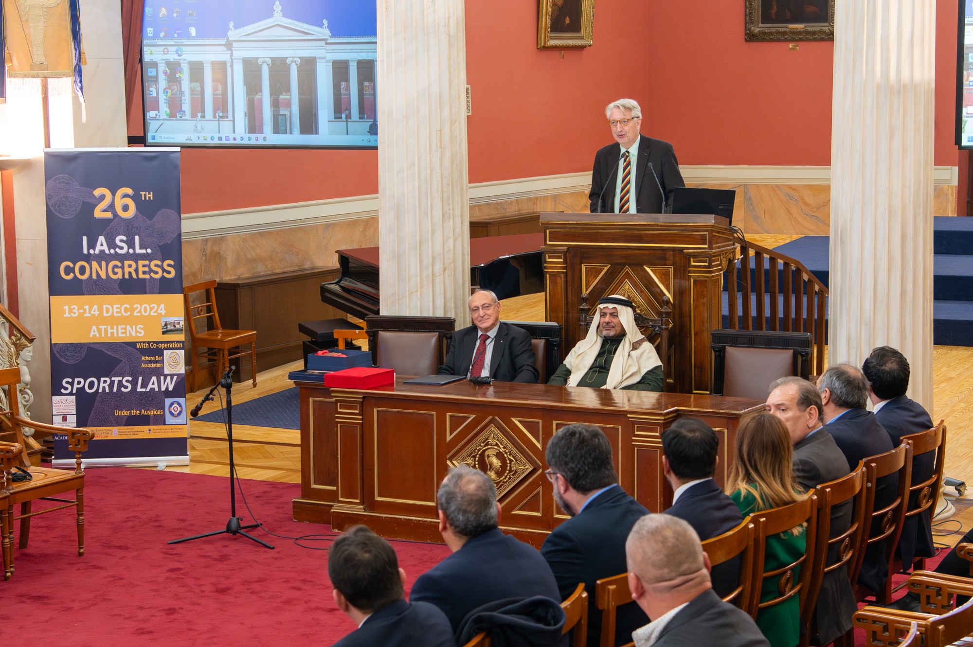 Στο αρμόζον, για την περίσταση κλίμα, έλαβε χώρα η Τελετή έναρξης του 26ου Διεθνούς Συνεδρίου Αθλητικού Δικαίου στις 13 Δεκεμβρίου με το ξεχωριστό πολιτισμικό χρώμα του βιολοντσέλου με τον ύμνο στον Απόλλωνα και την Ωδή της χαράς. Την εκδήλωση τίμησαν με την παρουσία τους ο Πρόεδρος της Κυπριακής Δημοκρατίας κύριος Νίκος Χριστοδουλίδης με τον πρέσβη της Κύπρου στην Ελλάδα. Tην Κυβέρνηση εκπροσώπησε ο Υφυπουργός Μεταφορών κύριος Βασίλης Οικονόμου, επίσης παρέστησαν το μέλος του Συμβουλίου Διοίκησης του ΕΚΠΑ καθηγήτρια κυρία Αθανασία Σμυρνιώτη, ο Βουλευτής της Νίκης κύριος Νίκος Παπαδόπουλος, πολλοί Σύνεδροι από πολλές χώρες.
