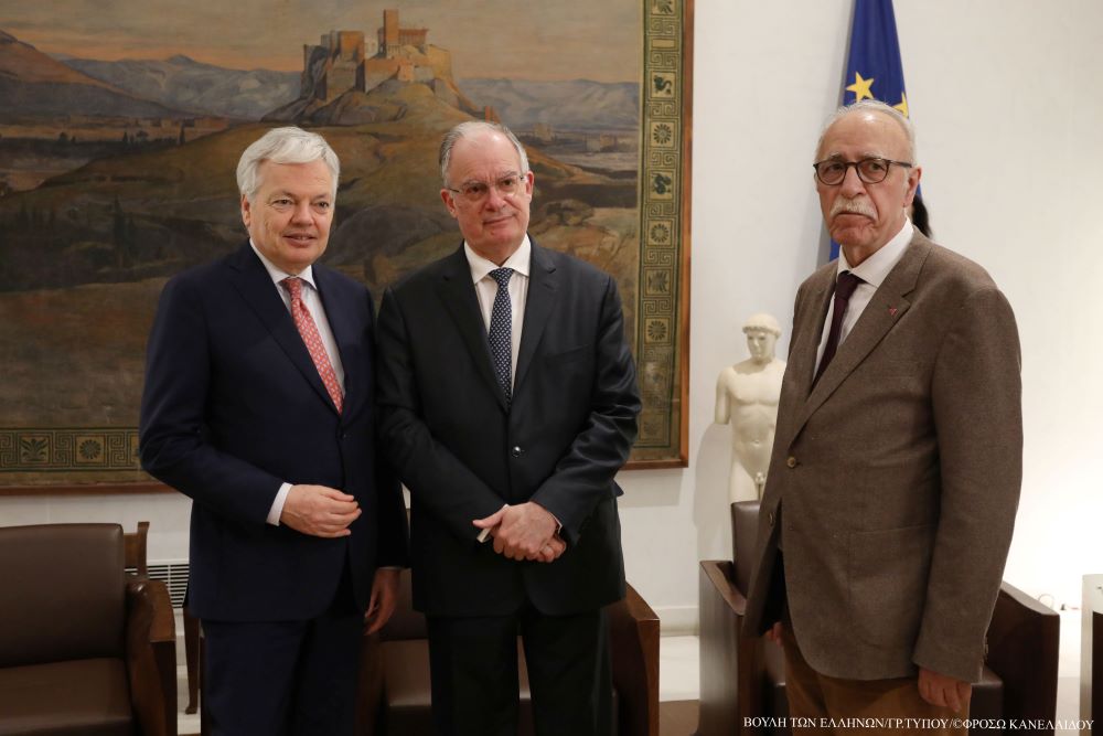 Ο κ. Τασούλας και ο κ. Reynders αντάλλαξαν απόψεις για την ετήσια Έκθεση της Επιτροπής για το Κράτος Δικαίου στην Ευρωπαϊκή Ένωση και στην Ελλάδα και για τη συμβολή της Βουλής στην παρακολούθηση υλοποίησης των συστάσεών της.