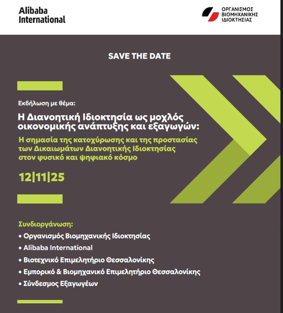 Η Διανοητική Ιδιοκτησία ως μοχλός οικονομικής ανάπτυξης και εξαγωγών, 12.11.2025 Ι Θεσσαλονίκη.