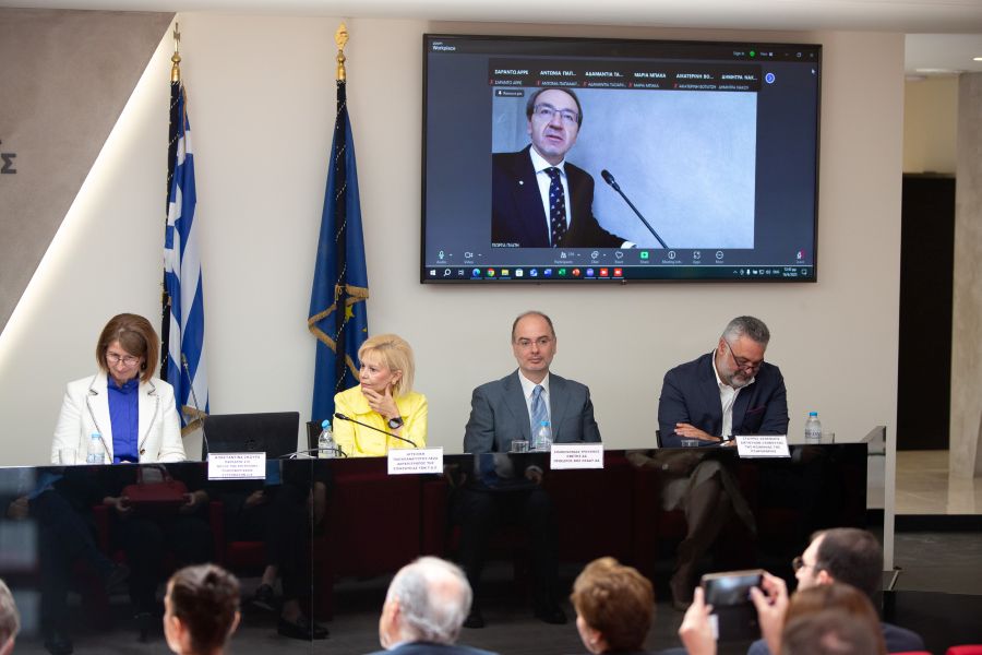Στο πλαίσιο της εκδήλωσης απηύθυναν χαιρετισμούς ο Υφυπουργός Δικαιοσύνης, κος Ιωάννης Μπούγας, η Υπηρεσιακή Γραμματέας του Υπουργείου Δικαιοσύνης, κα Βίκυ Γιαβή, ο Αντιπρόεδρος του Συμβουλίου της Επικρατείας και Πρόεδρος της Διαρκούς Επιστημονικής Επιτροπής για την εξέταση των επιπτώσεων στο δικαστικό σύστημα από την εισαγωγή της τεχνητής νοημοσύνης, κος Κωνσταντίνος Κουσούλης, καθώς και ο Ειδικός Σύμβουλος της Ειδικής Γραμματείας Μακροπρόθεσμου Σχεδιασμού στην Προεδρία της Κυβέρνησης, κος Μάριος Δαφνομήλης.