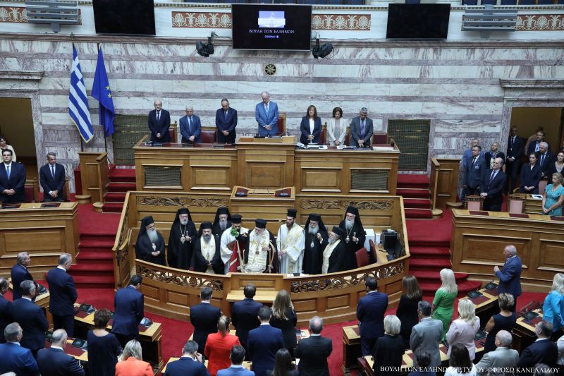 Η καθιερωμένη τελετή Αγιασμού πραγματοποιήθηκε σήμερα το πρωί στην Ολομέλεια της Βουλής των Ελλήνων, για την έναρξη των εργασιών της Β΄ Συνόδου της Κ΄ κοινοβουλευτικής Περιόδου, από τον Αρχιεπίσκοπο Αθηνών και Πάσης Ελλάδος κ. Ιερώνυμο.