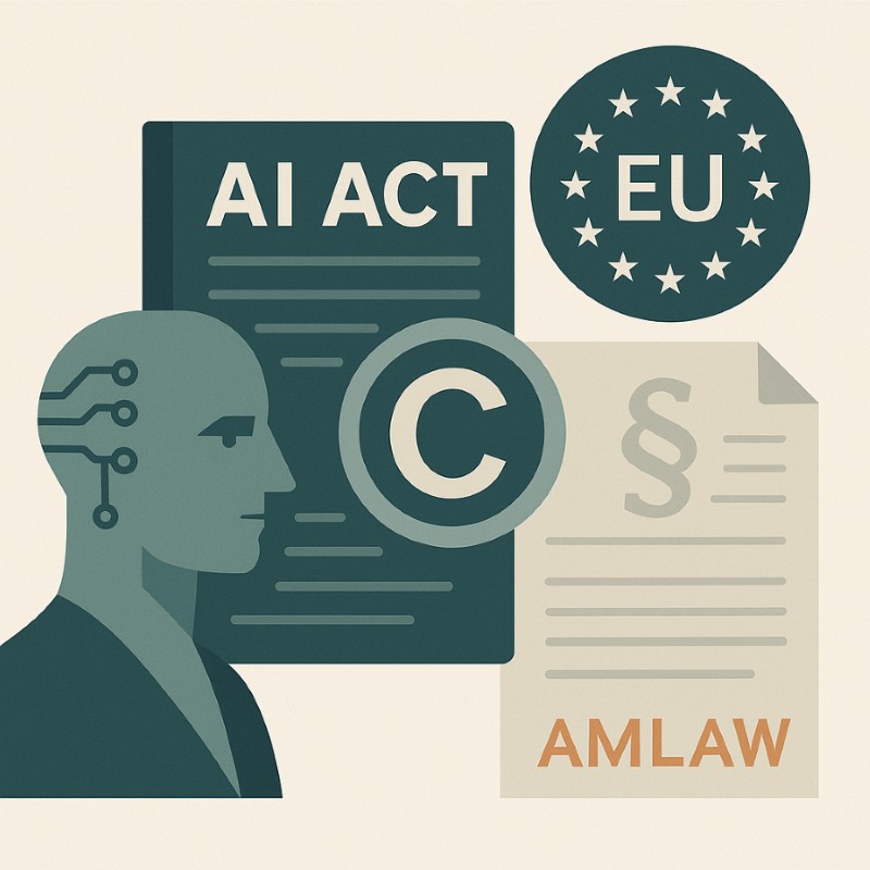 Ο Κανονισμός (ΕΕ) 2024/1689 – AI Act εισάγει υποχρεώσεις για τους παρόχους γενικού σκοπού AI. Το άρθρο 53 προβλέπει πολιτική συμμόρφωσης πνευματικών δικαιωμάτων, ενώ το άρθρο 50 υποχρεώνει σε σήμανση περιεχομένου.